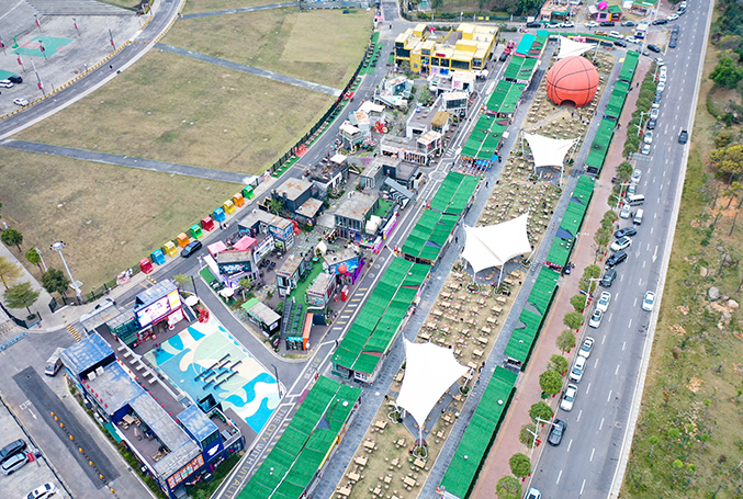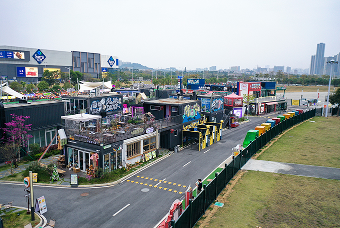 项目位于东莞篮球中心5号门旁,紧邻东莞首家山姆会员店,由160个集装箱打造而成。项目占地面积6124平方米,建筑面积3000余平,于2023年9月立项启动,2023年12月29日正式投入运营。