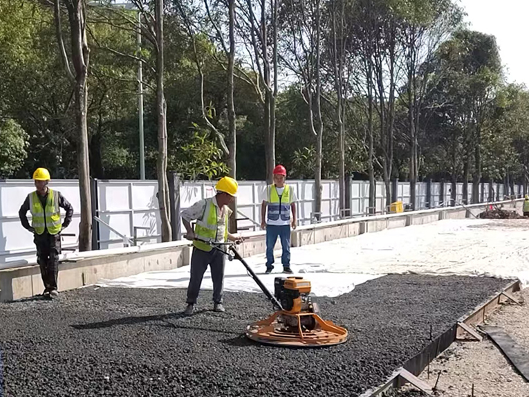 ▲透水混凝土路面施工