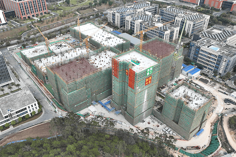 ▲松湖药港二期项目7号楼A塔封顶航拍图